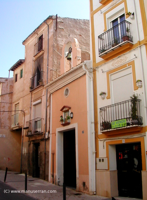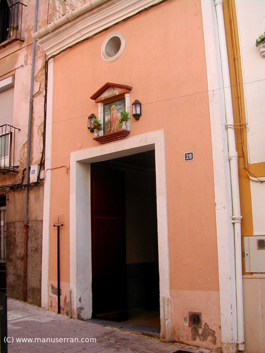 «…Situada en el carrer del Raval, en el casco antiguo de la población, circunstancia que hace que sea conocida popularmente como Ermiteta del Raval o la Ermiteta…». (2)