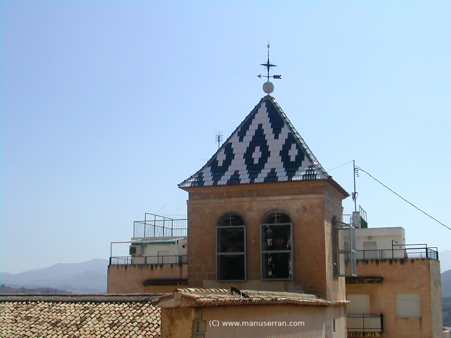 Reproducimos una descripción más actual del templo: «…Iglesia embutida en el centro histórico, en la ladera que sube al castillo, con algunas edificaciones anexas. La volumetría exterior no se aprecia bien al no existir a su alrededor ningún ensanchamiento del espacio público. La entrada se hace por una sencilla portada clásica, sin ornamentación. Destaca el campanario de piedra, de planta cuadrada, situado a los pies, coronado por un curioso chapitel piramidal de teja plana vidriada verde y blanca. La cubierta de la nave es a dos aguas y la del crucero a cuatro. El interior desnudo, sin relieves, pinturas ni ornamentos: consta de una nave central de cuatro tramos con bóveda de cañón y capillas laterales…». (4)