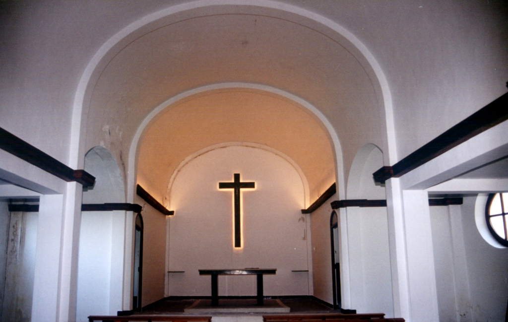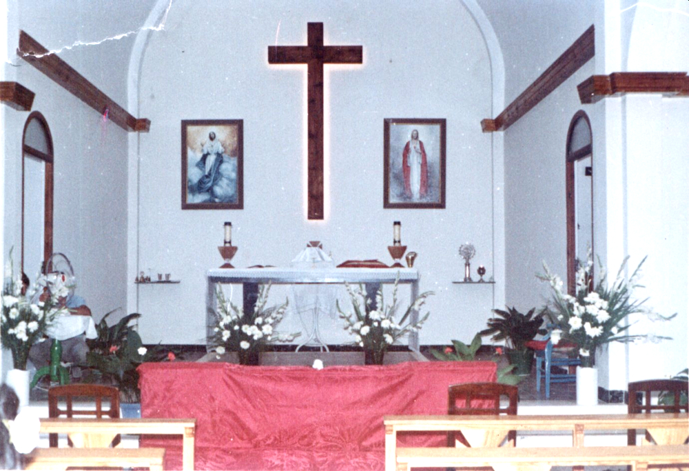 «…Existían unas viviendas adosadas donde habitaban los trabajadores de Raduán. A mediados de la década de 1950, por empeño personal de Don Cirilo Tormo Dura, párroco de San Roque de Alcoy, que tenía íntima relación con la familia de los papeleros Raduán de Alcoy, que habían montado un gran complejo a las afueras de Lorcha, intercedió para que al final de las citadas viviendas se construyera una capilla espaciosa para la atención religiosa de las familias y trabajadores de la fábrica, comprometiéndose a atenderla personalmente el citado párroco, Don Cirilo.