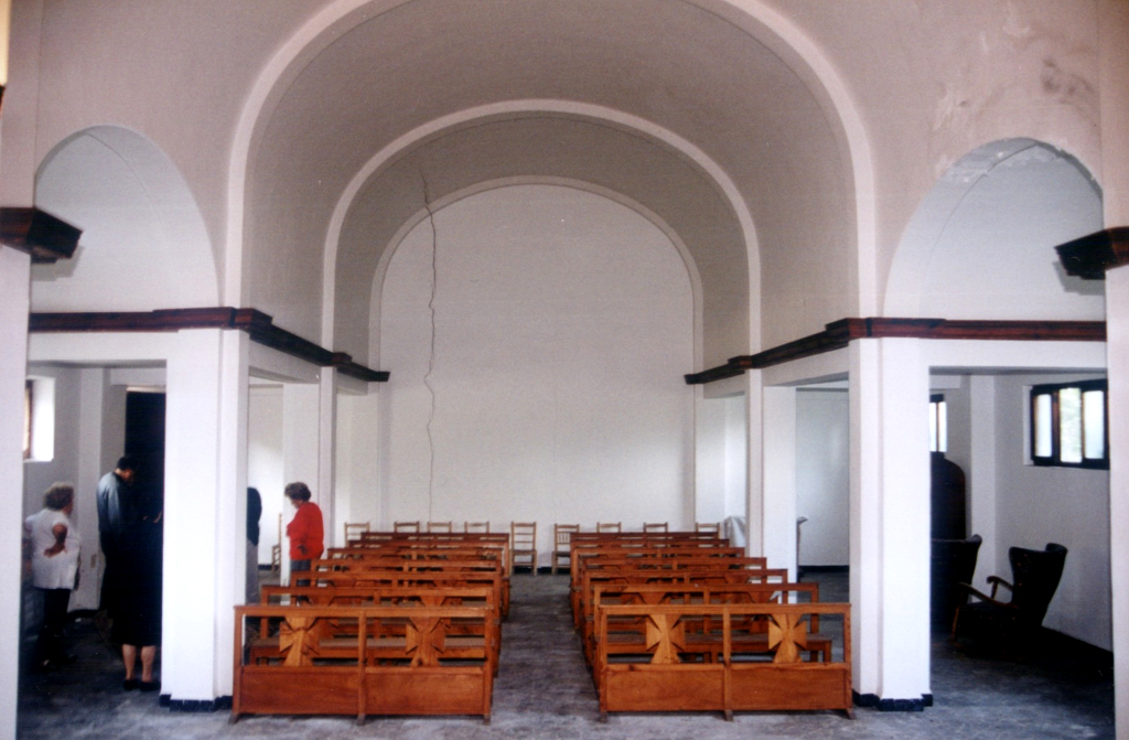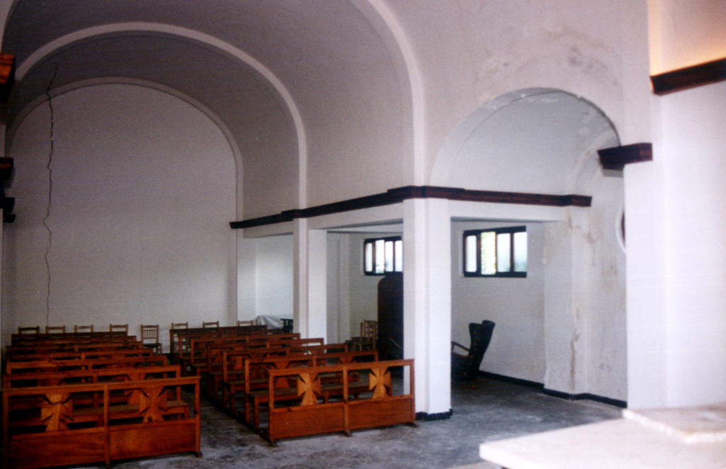 La construcción adoleció de grandes defectos, entre ellos la cimentación, y a finales de 1990 se formaron grandes grietas en el edificio que dieron como resultado el hundimiento del conjunto. Poco antes de ocurrir el desastre, los bancos de madera, imágenes, altar y pilas de agua bendita se trasladaron a la parroquial de Lorcha, junto con dos buenos cuadros de la Virgen de la Asunción y el Sagrado Corazón de Jesús. Al poco tiempo se hundió definitivamente…». (2)