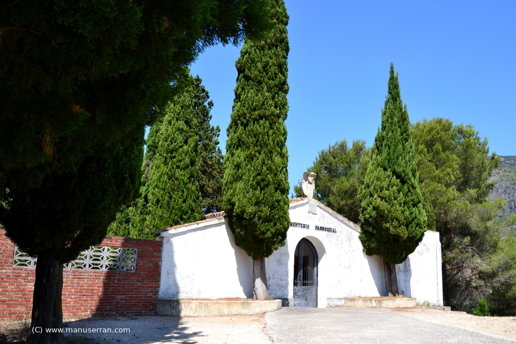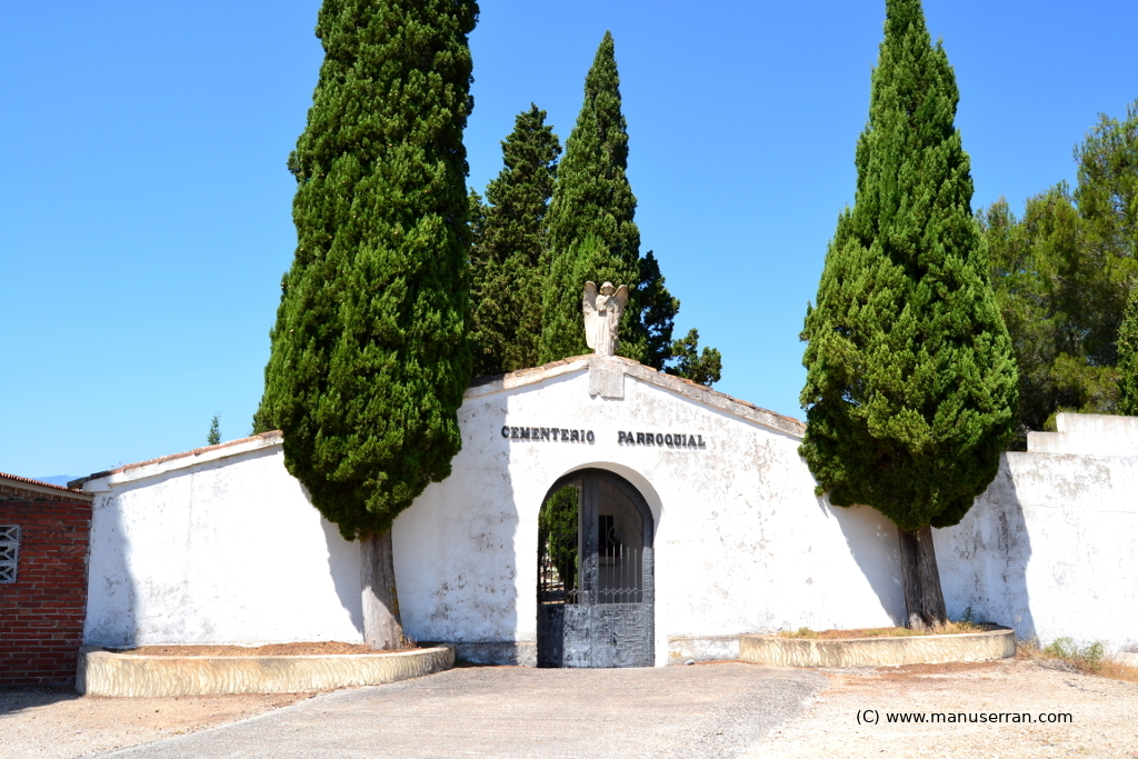 Respecto del cementerio, como se dice anteriormente, se encuentra a menos de 300 metros. La fachada no ofrece otros datos destacables que el acceso en arco de medio punto, sobre el mismo la leyenda “Cementerio Parroquial” y, coronando el vértice, la escultura de un ángel.