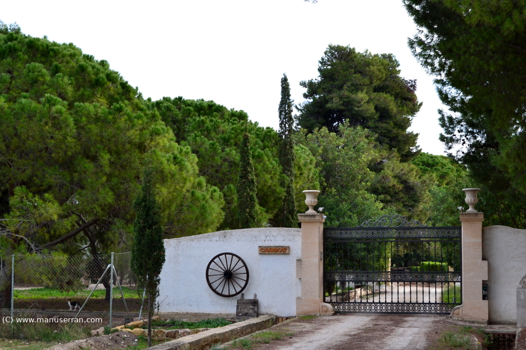 Al Suroeste del término de Muchamiel, en la partida rural denominada Cassou, se encuentra la finca que da nombre a la partida. Reducidas sus dimensiones por la construcción de la actual carretera, como dato curioso hemos de decir que se trasladó y reconstruyó en los jardines de la finca, el antiguo acueducto que ya existía en el siglo XVIII…». (2)