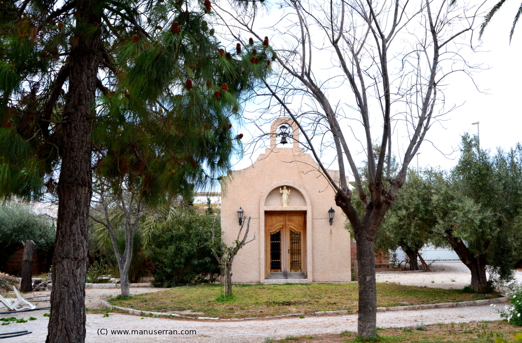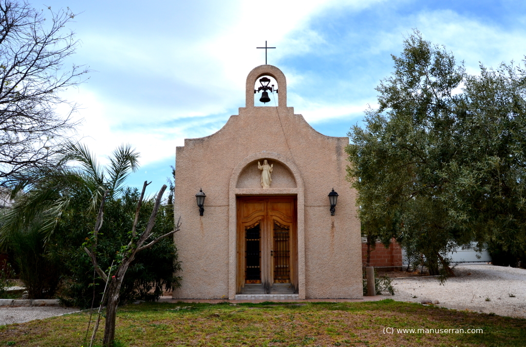 La ermita, edificio exento construido con bloques de hormigón y muros revestidos, de planta rectangular, mide 4 por 5 metros, con ábside recto y presbiterio elevado un escalón. La cubierta en teja curva a dos aguas, en el interior decoración con vigas de madera. En la fachada, dos farolillos centran el acceso recercado en arco de medio punto con dintel que enmarca la puerta de madera y sobre ella escultura en piedra de Jesucristo. En el vértice espadaña de obra en arco de medio punto que alberga una campana fundida por Manclús, remata el conjunto una cruz metálica.