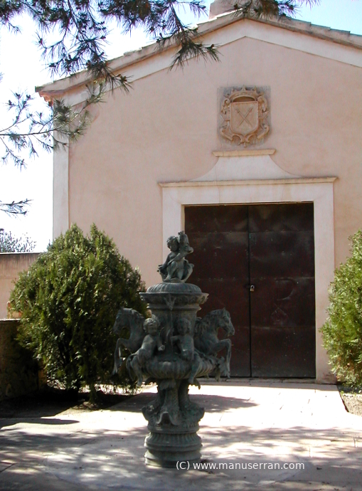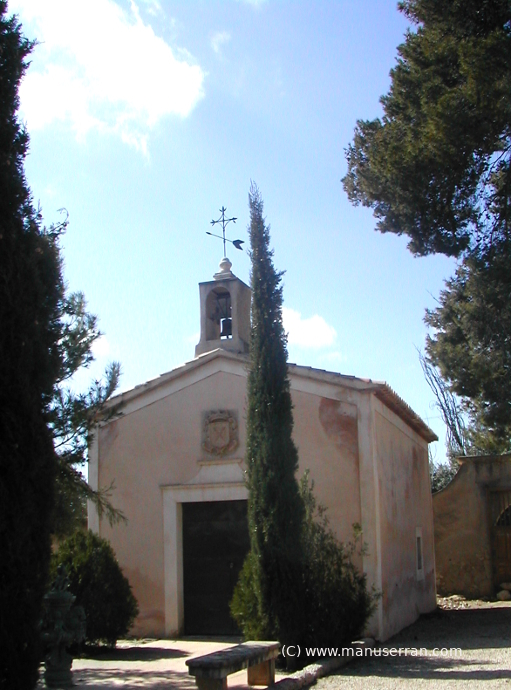 Situada junto a la primitiva entrada, se encuentra una pequeña ermita bajo la advocación del Sagrado Corazón de Jesús. Se trata de un edificio exento, de planta rectangular y cubierta a dos aguas en teja curva con una ventana en cada lateral. La fachada orientada al Este, tiene puerta dintelada sobre la que figura el mismo escudo nobiliario que existe en la fachada principal de la casa y al que nos hemos referido anteriormente, espadaña con hueco en arco de medio punto que alberga la campana y remata la misma una pequeña cruz de hierro con veleta.