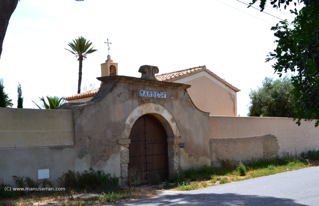 La familia Marbeuf (1) residentes en Alicante desde el siglo XVIII, disponían de una vivienda situada en la actual calle Maldonado, donde ser conserva todavía una casa palaciega en cuyo dintel se encuentra un escudo nobiliario con la misma iconografía que figura en la finca situada en Muchamiel y en la situada en Rojales, conocida como Lo Marabú.