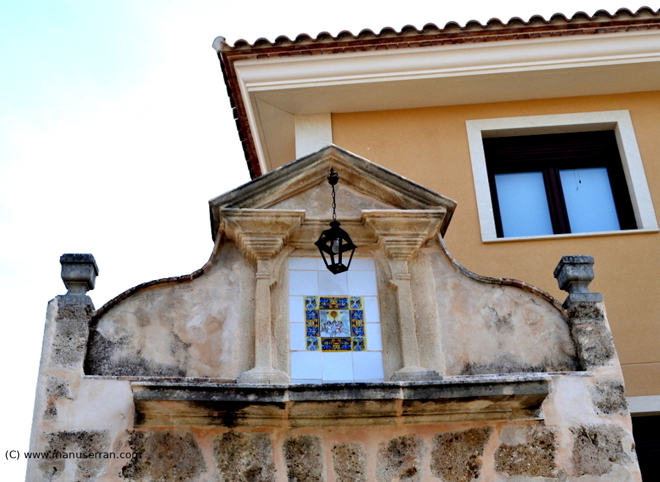 De lo que fue una antigua capilla tan sólo queda la fachada principal, con elementos neoclásicos y un azulejo cerámico que representa el Santísimo Sacramento con sustitución de otra imagen…». (1)