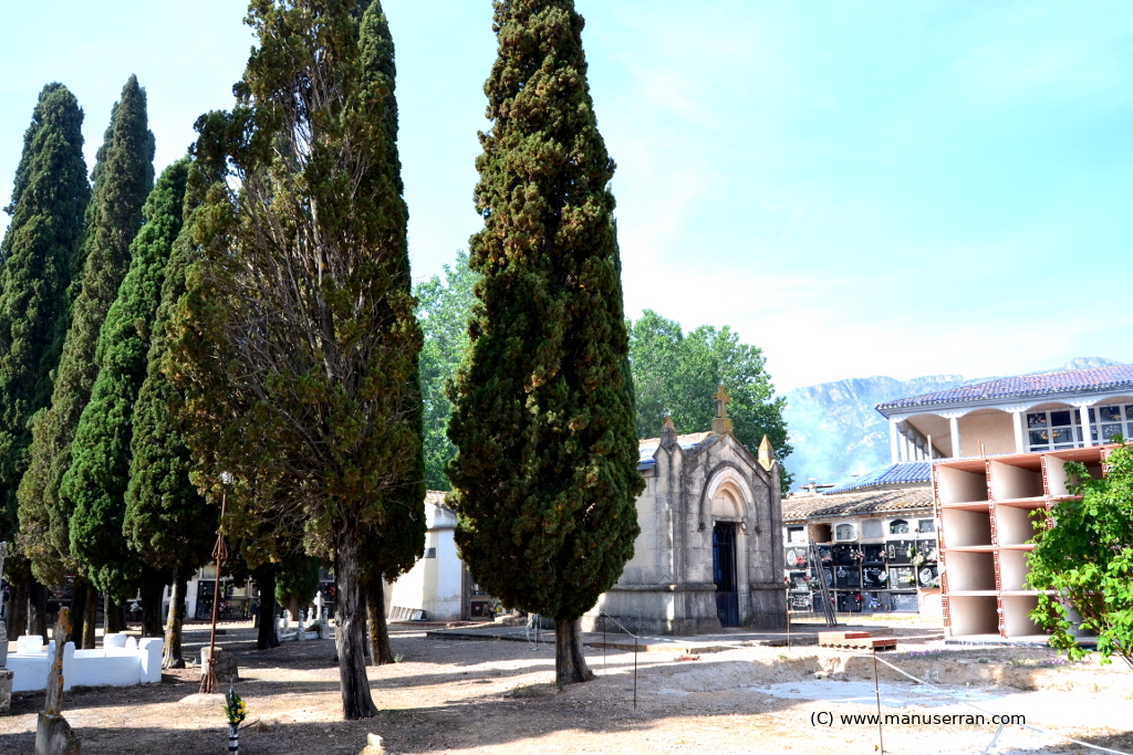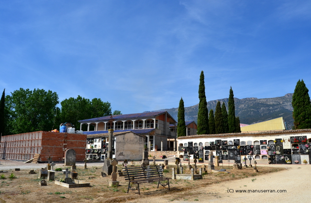 «…y un cementerio en parage ventilado…». (1). Desconocemos si esta referencia de Madoz corresponde con la del actual cementerio. Muy posterior es esta reseña del cementerio de Muro de Alcoy: «…Es parroquial y dista 550 metros del templo. Hay un cementerio civil…». (2)