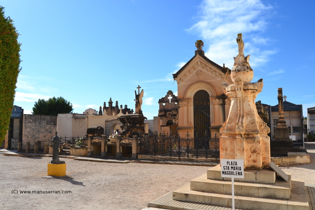 «…Este cementerio es un ejemplo de camposanto burgués, de estructura cuadrangular. Fue inaugurado en 1884, después de una grave epidemia de cólera que asoló el municipio. Destacan los panteones y criptas de estilo arquitectónico ecléctico con gran influencia del modernismo.