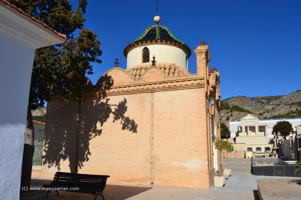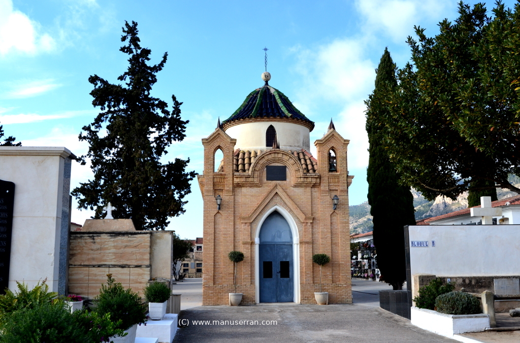«…El actual cementerio, antes de la última remodelación y ampliación fue inaugurado el 29 de Abril de 1891 con asistencia de las Comparsas de Moros y Cristianos. La falta de recursos económicos únicamente propiciaron la adquisición del terreno y su adecuación. Un día el Ayuntamiento de Onil recibe una comunicación que firma D. Vicente Navarro Bellod (2) solicitando permiso para, con cargo a su cuenta, embellecer y rematar lo que no se había hecho.