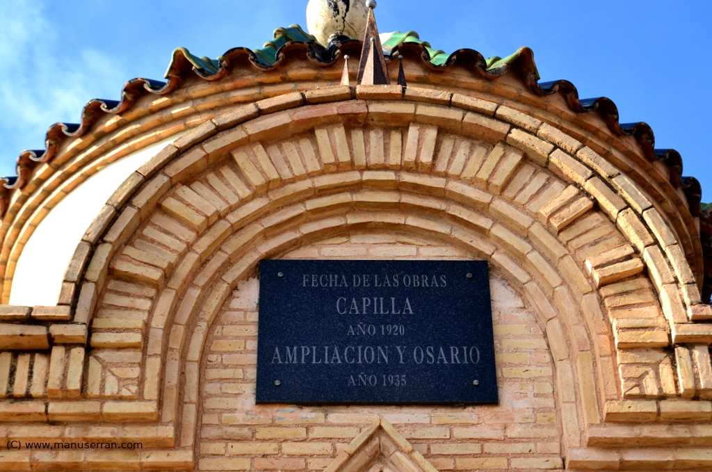 El 8 de Agosto de 1921 con el pláceme de todo el consenso, se le concede la autorización. Las obras comienzan con rapidez edificándose la ermita-capilla y el cerramiento del conjunto del que destaca la puerta de hierro forjado, obra del artesano Simeón Sanchís…». (3)