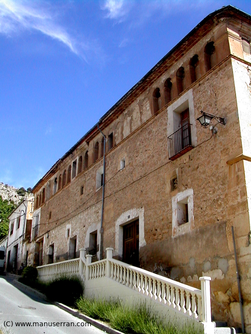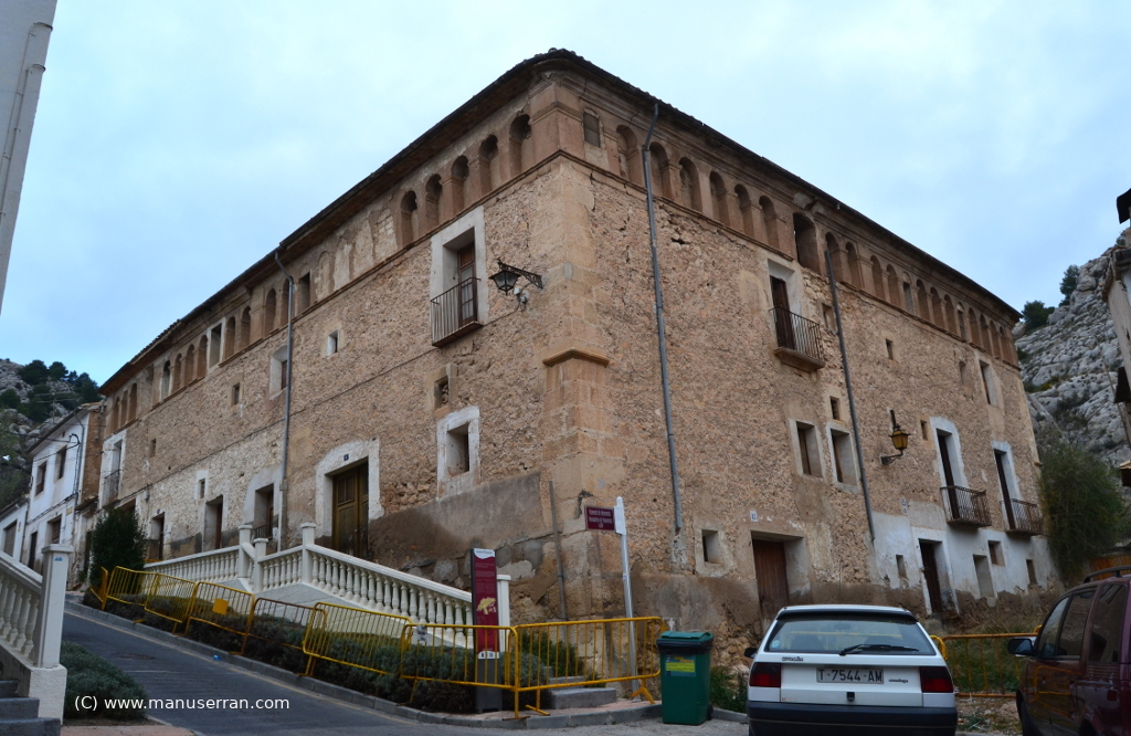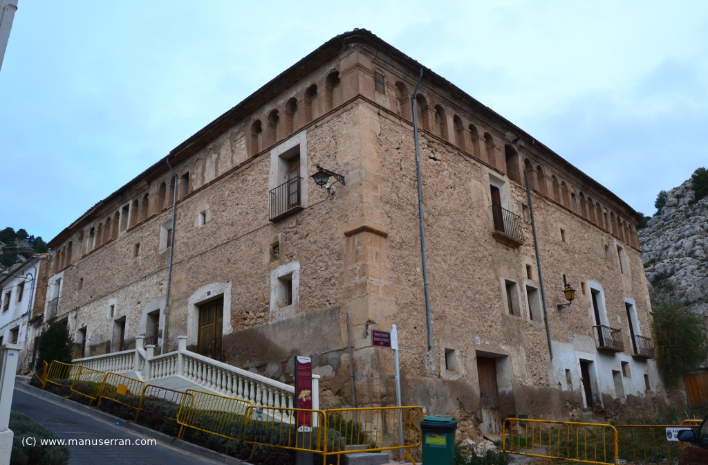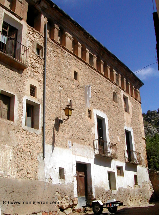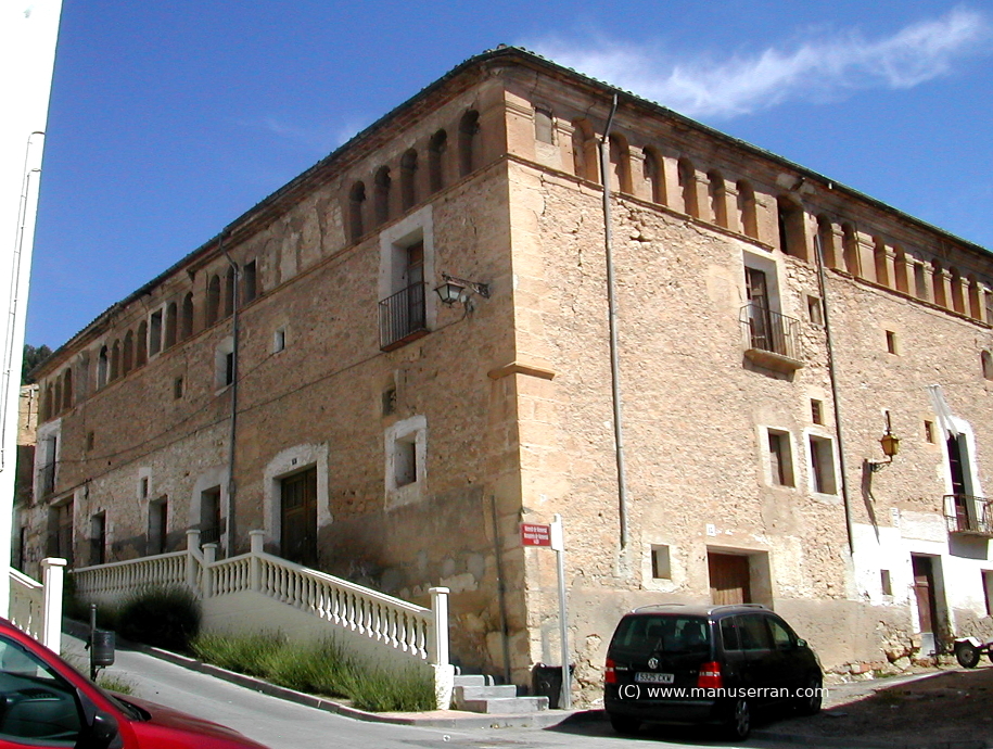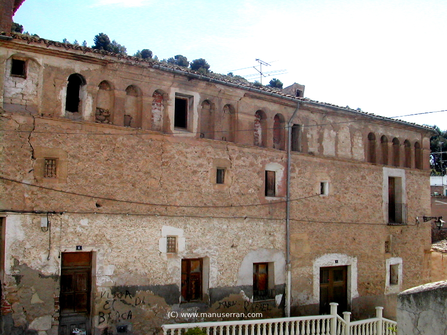 «…El inmueble se configura como un potente volumen cúbico que ocupa casi una manzana en la trama antigua de la parte más alta de Onil. La última planta formada por una galería continua de arcadas ciegas, logra insinuar la unidad perdida por la fragmentación interior de la propiedad. El edificio divido en viviendas y locales, es la fiel imagen del estado del patrimonio arquitectónico tal y como llegó al siglo XIX: inmuebles desfigurados, alterados, abandonados, reocupados, pero todavía con restos de su antiguo esplendor…». (1)
