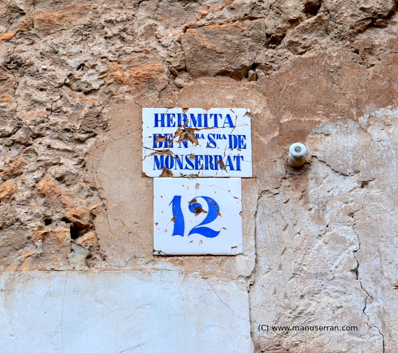 Los accesos al edificio se efectuaban por una calle que pasa por delante de lo que era la Almazara de la señoría. En el lado derecho de esta calle, señalado con acceso dintelado, enmarcado por sillares, se encuentra la primitiva entrada a la Ermita de Nuestra Señora de Monserrat.