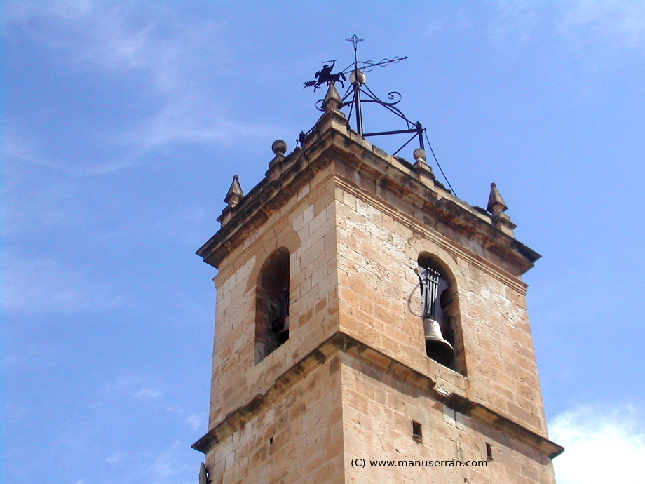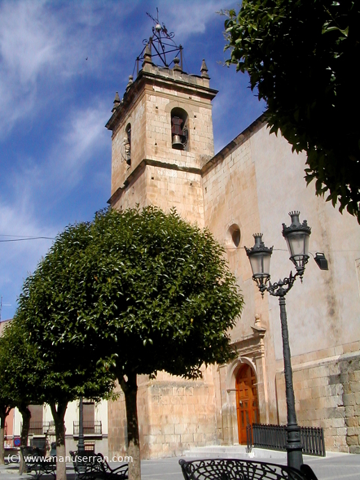 La iglesia parroquial tiene por titular a San Jaime apóstol. Guarda un retablo de la Virgen del Rosario, del siglo XVI, y el lienzo de la capilla donde está la pila bautismal parece de Vergara. En la noche del 5 al 6 de noviembre de 1824 ocurrió el sacrílego robo del viril con la sagrada Forma, y de otras alhajas, las que se conservan todas con singular veneración, pues fueron encontradas y el criminal ejecutado, escribiendo una detallada Memoria de todo lo ocurrido D. José Antonio Sombiela, la que se imprimió en Valencia, 1825. Contaba con 17 beneficios, hoy incongruos por la desamortización…». (2)