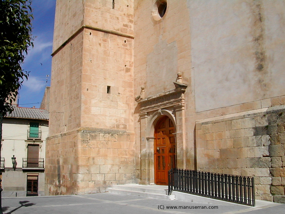 «…Templo de nave única con cuatro vanos con capillas entre contrafuertes comunicadas entre sí y cabecera poligonal. La cubierta del templo resuelve mediante bóvedas de tradición gótica mientras que la articulación de los muros se realiza con pilastras de impronta clásica. La iglesia cuenta con dos portadas, una, más antigua, al Sur, y otra al Oeste, un coro alto y capilla de la Comunión de planta octogonal con cúpula de ocho gajos…». (4)