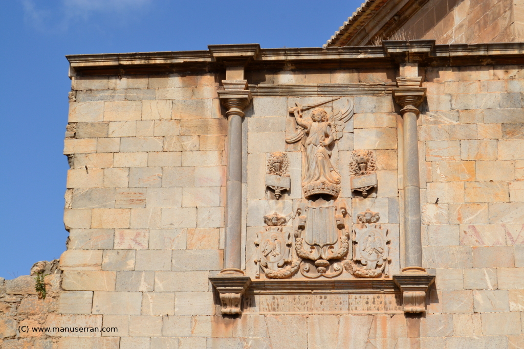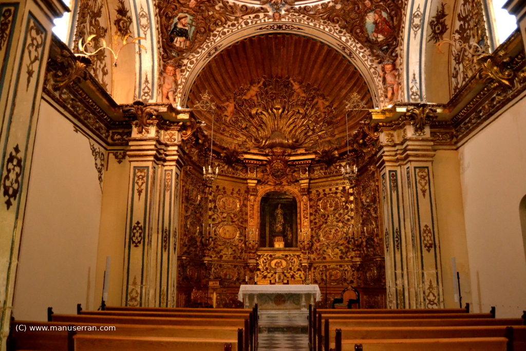La Iglesia, de nave única con capillas entre contrafuertes, crucero y cabecera poligonal, cubierta con bóveda de medio cañón con lunetos en la nave, cúpula sobre pechinas en el crucero y casquetes en forma de venera en la cabecera. Se reedificó en la segunda mitad del siglo XVII según proyecto de Pedro de Quintana, conservándose de la iglesia primitiva el presbiterio y la portada principal.