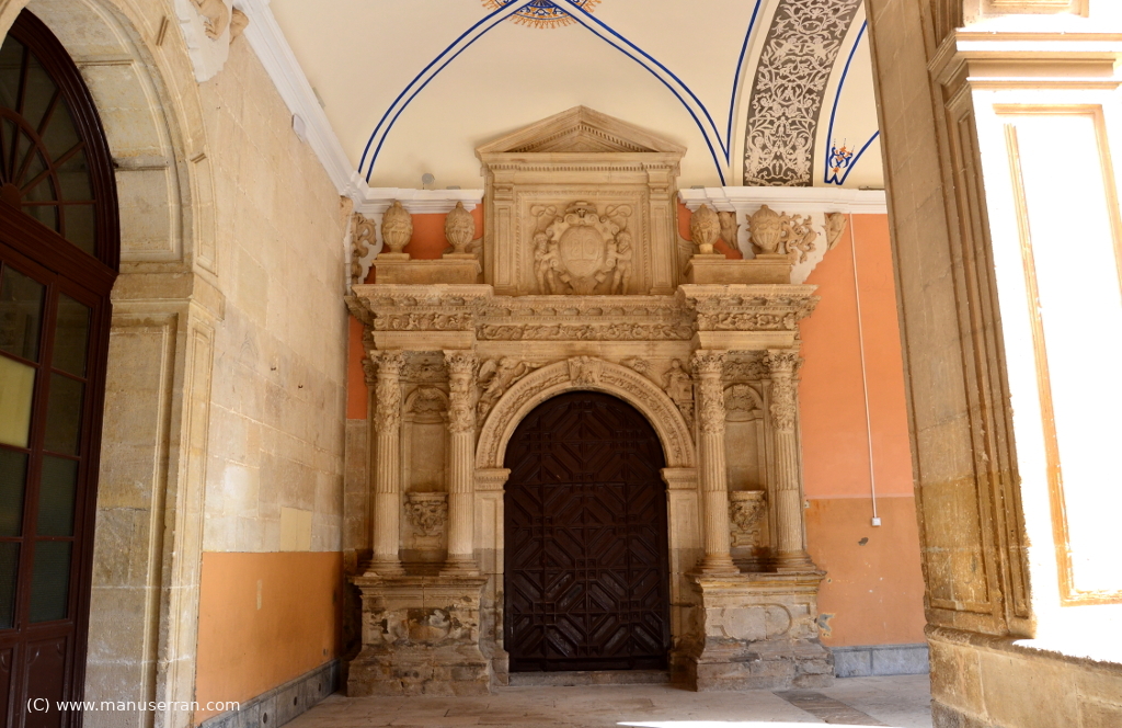 El claustro de la Universidad, de estilo barroco, realizado entre los años 1727 y 1737, diseñado por el trinitario P. Francisco Raymundo con talla realizada por Pedro Juan Codoñer y Jacinto Perales, consta de dos cuerpos con arcos de medio punto apoyados en columnas, en las enjutas de los arcos decoración heráldica: Papado, Fernando de Loazes, Casa Real, etc.