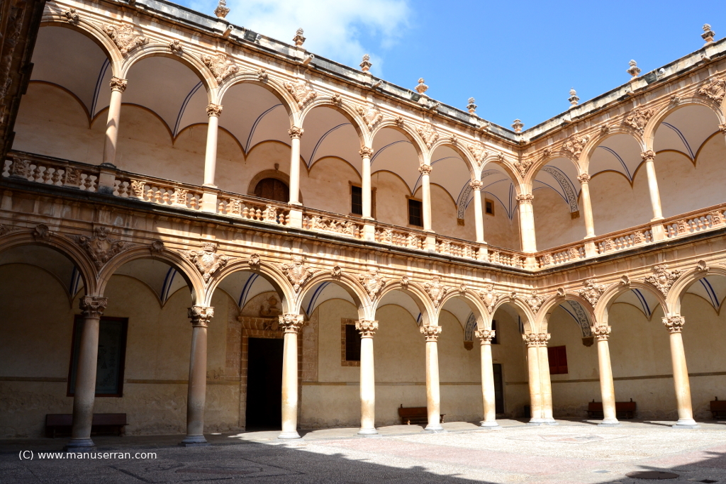 Visita al interior: El edificio se estructura en torno a dos claustros para las dependencias principales y un patio trasero para las de servicio.