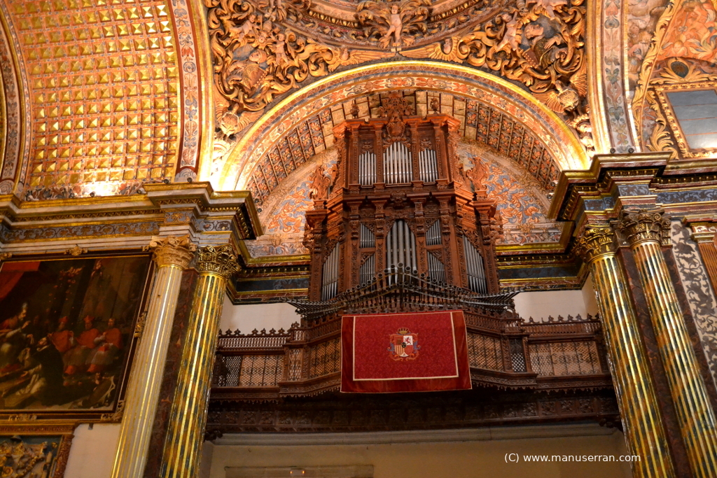 Obra renacentista en su concepción y barroca en su decoración. Participan en su decoración multitud de artistas, destacando Bartolomé Albert, que pintó y doró las bóvedas (1692-1696), y Juan Ruiz que colaboró con él a partir de 1700 en la decoración de la zona comprendida entre el suelo y las cornisas.