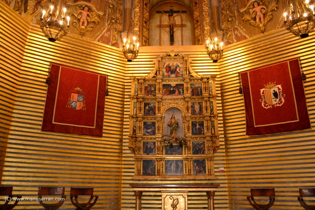En uno de los brazos del crucero se sitúa la Capilla del Rosario, construida entre 1680 y 1701 con planta en cruz latina, cúpula con linterna en el crucero y cabecera poligonal con cubierta avenerada…». (2)