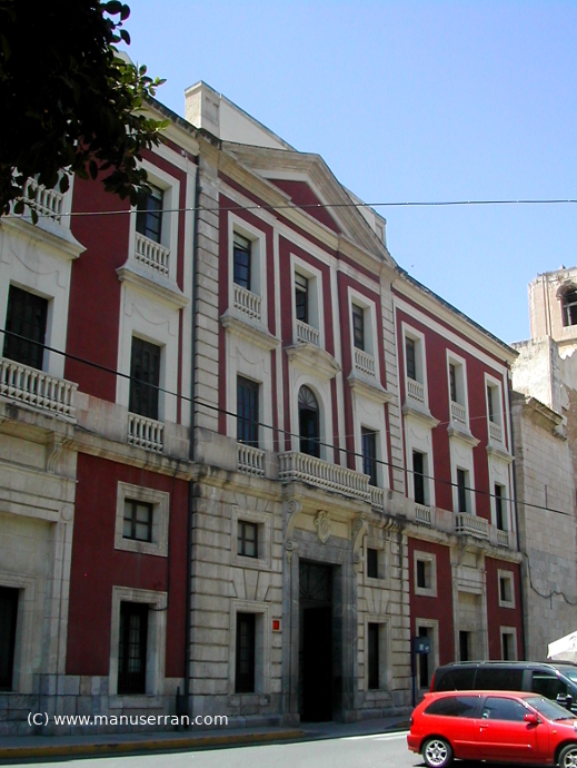 «…En un principio construyeron un edificio gótico que posteriormente fue sustituido por el actual de estilo neoclásico que data del siglo XVIII, estando en 1750, todavía en construcción. Posee un gran claustro que da a un gran patio, sobre el que gira todo el edificio. Este claustro es de estilo neoclásico, realizado en sillares de piedra. De igual estilo es la fachada, reformada en el siglo XIX.