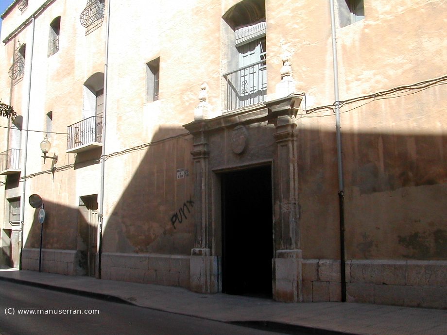 En el origen de este convento encontramos las donaciones de una viuda local, que en su testamento encarga a su hija que cediera parte de su hacienda para crear un monasterio de Santa Clara. Los eruditos no se pusieron de acuerdo sobre este personaje, que según Montesinos (1) sería una señora llamada Crespa, viuda del ciudadano Joan Ontinyent, observante de los preceptos de la orden tercera de San Francisco. Según Bellot (2), fue la viuda de Andreu Ontinyent la que erigió el monasterio, mientras que para Morales fueron dos señores Cascant, o la viuda de Marc Rosell, según Madoz…». (3)