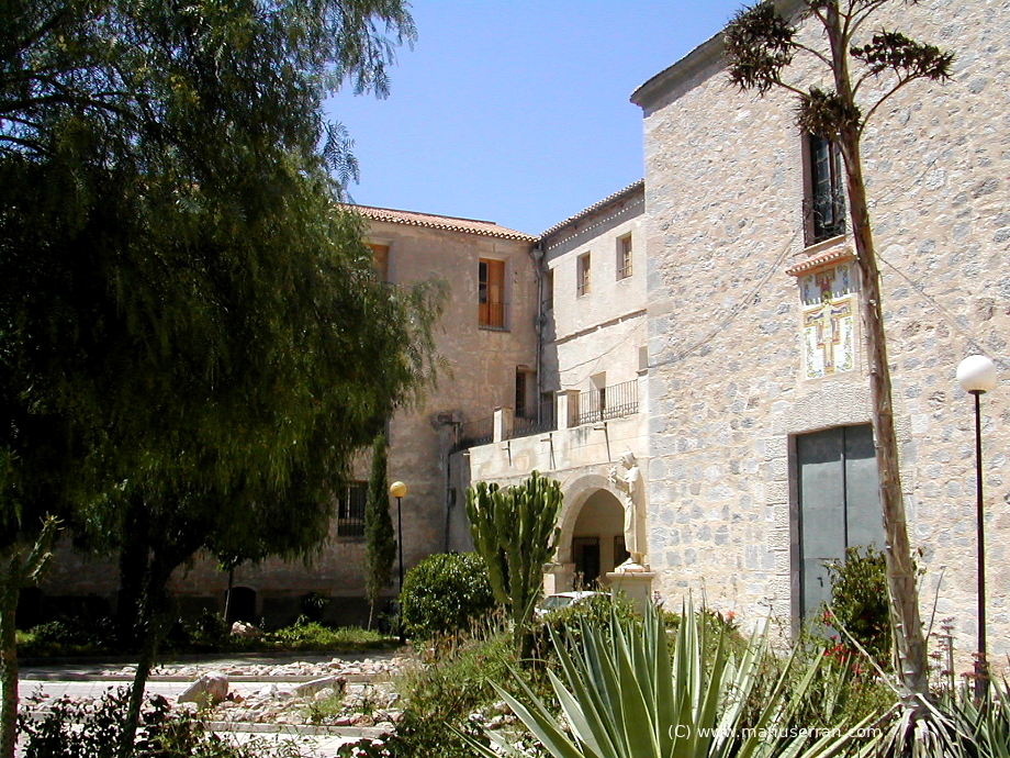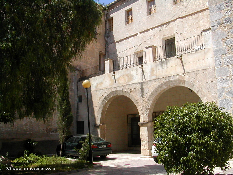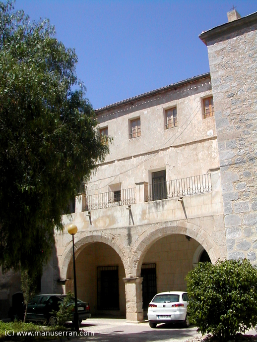 «…La construcción del actual convento de franciscanos data de 1594. Es un edificio, amplio y desornamentado de tres plantas. En él destacan el porche de acceso decorado con arcada, el refectorio y un pequeño claustro, así como la escalera principal.