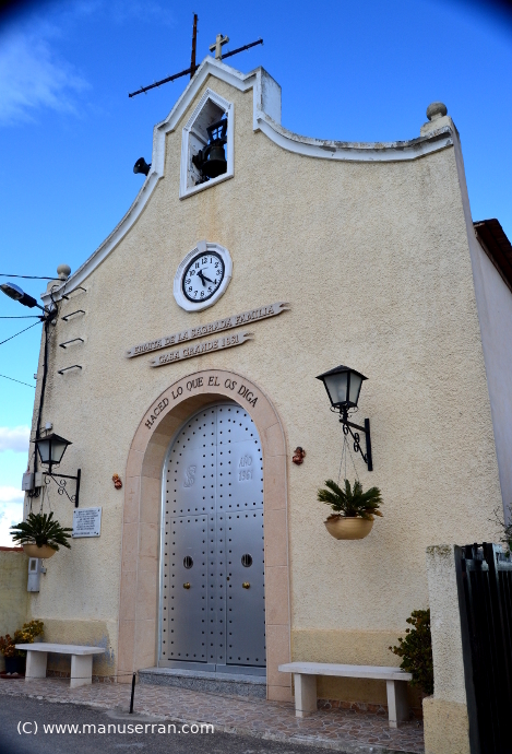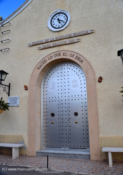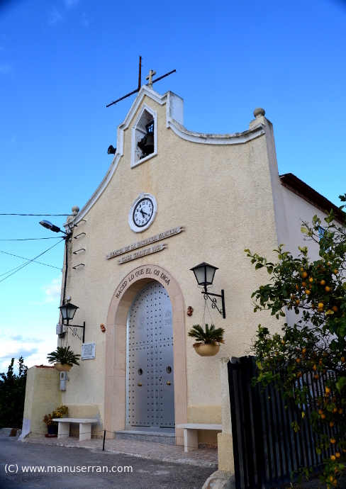 «…Ermita rural, en el barrio de Casa Grande, al que se accede por un camino a la izquierda de la carretera de San Bartolomé a Orihuela; feligresía de San Bartolomé. Se construye en 1961, bajo la iniciativa de la Asociación de Regantes de las zonas de Casa Grande y la Zanja y, rodeado de naranjos se alza este edificio exento, constreñido por las fincas próximas sin apenas espacio delante de la ermita.