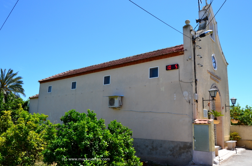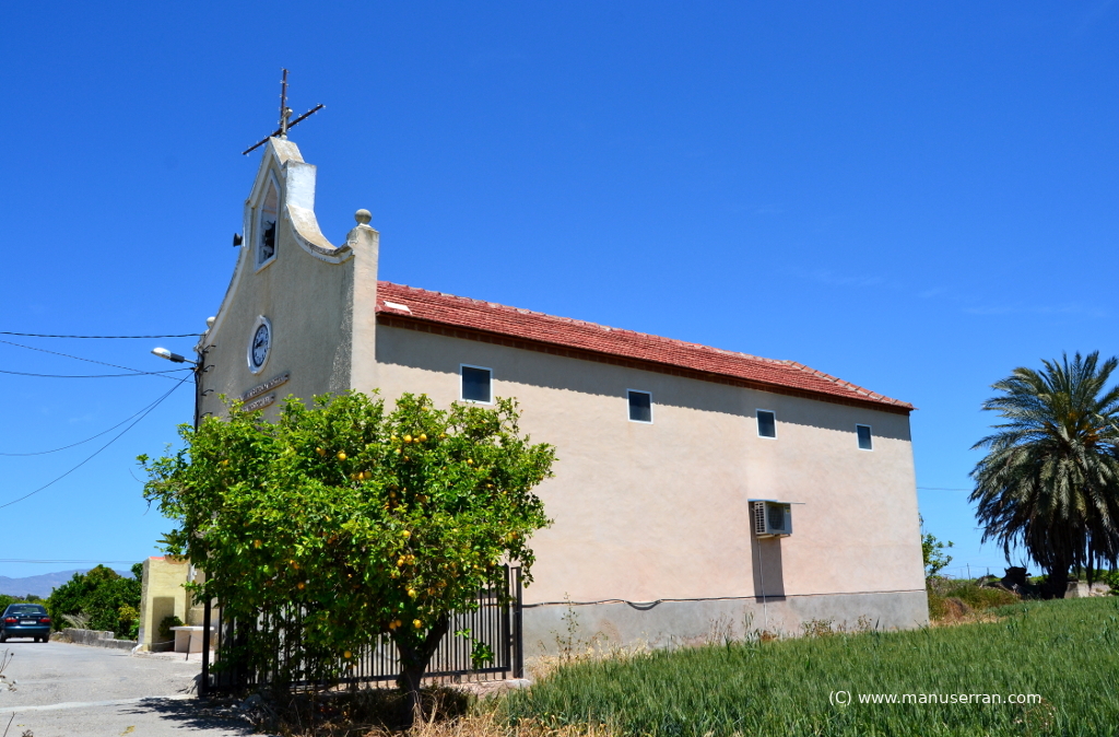 «…Ermita rural, en el barrio de Casa Grande, al que se accede por un camino a la izquierda de la carretera de San Bartolomé a Orihuela; feligresía de San Bartolomé. Se construye en 1961, bajo la iniciativa de la Asociación de Regantes de las zonas de Casa Grande y la Zanja y, rodeado de naranjos se alza este edificio exento, constreñido por las fincas próximas sin apenas espacio delante de la ermita.