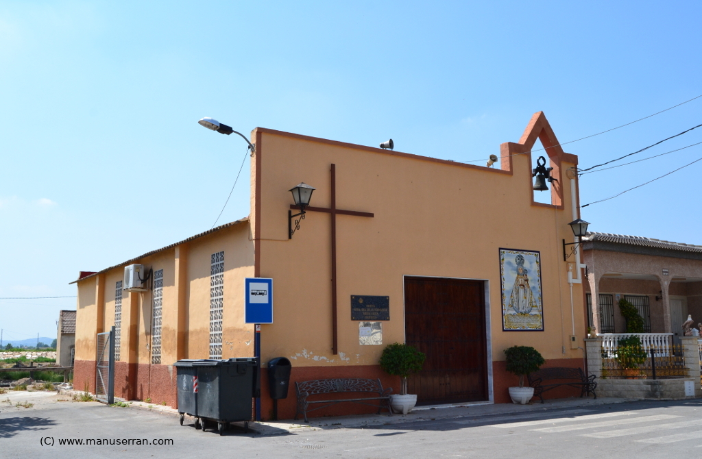 «…Ermita en la pedanía de Media Legua, pertenece a la feligresía de Santiago de Orihuela. Existen restos de una ermita anterior, con similar advocación en una finca particular cercana; en 1974, surgidas ciertas dificultades para su uso público, los vecinos erigieron la ermita actual sobre terrenos cedidos por uno de ellos.