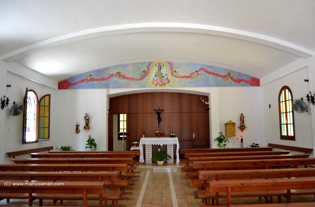 La planta es rectangular y mide 10,90 por 7,30 metros, tiene a cada lado tres ventanas y el presbiterio con testero en forma poligonal y hornacina en semicírculo…». (1)