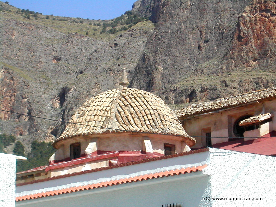 El tercer tramo sostiene una cúpula, sobre tambor y pechinas. El presbiterio se eleva un escalón y se cubre también con bóveda de cañón; un retablo barroco tapa la casi totalidad del testero; en su centro, sobre una ménsula cubierta con dosel, la imagen de San Antonio Abad se acompaña con pinturas laterales representando niños acompañados de ángeles que presentan al Santo diversos animales…». (1)