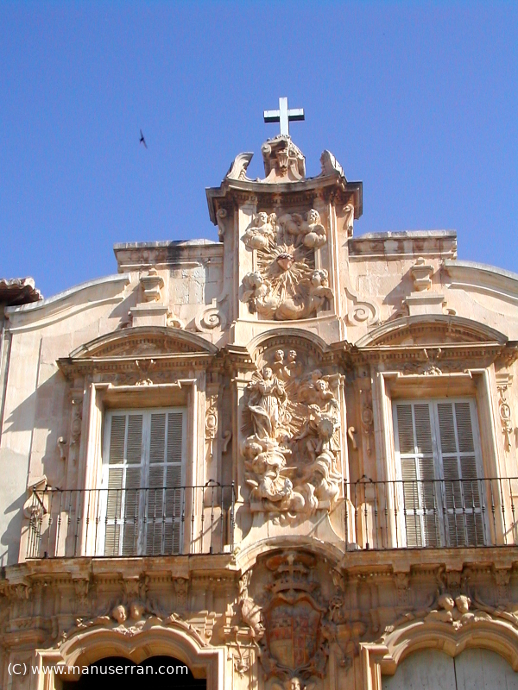 La descripción que hace Madoz es la siguiente: «…Seminario conciliar de San Miguel. Es el general de la diócesis, fundado por el obispo D. Juan Elias Gomez de Teran en virtud de lo dispuesto por el concilio de Trento, y le tituló del Principe San Miguel y la Purísima Concepcion: está situado sobre la esplanada que forma la montaña del castillo, á distancia de 464 pasos geométricos de la catedral. Su erección fue aprobada por bula de S.S. de 7 de marzo de 1743, y real provision de 28 de mayo del mismo año: estaba dotado con el 4 por 100 sobre todas las rentas decimales de la diócesis, no sin contradiccion del cabildo catedralicio y varios partícipes legos; pero el obispo obtuvo sentencias á su favor que se hallan ejecutoriadas. Antes de haberse cerrado por falta de rentas estaba dividido en dos colegios, uno de padres operarios del Santo Evangelio, cuyo instituto es el salir de mision por la diócesis y dirigir los alumnos del otro de jóvenes dedicados á la carrera eclesiástica, á los que se les enseñaba gramática latina, filosofía, teología con toda la estension posible, aunque con sujecion á los planes de estudios del Gobierno, moral, Sagrada Escritura, ritos, cómputos y ceremonias eclesiásticas, canto llano y todo lo demas necesario para formar sacerdotes instruidos. En algun tiempo ha tenido hasta 150 colegiales, 20 superiores entre el rector, vice-rector, catedráticos, bibliotecario, maestro de canto y mayordomo: los dos primeros eran presidentes y vice-natos del seminario de Padres, y los restantes superiores pertenecen por lo regular á esta clase. Para el servicio de la sacristía, refectorio, enfermería, ropería y otras oficinas, sostenía un considerable numero de estudiantes pobres; y para la cocina y demás oficios menos decorosos habia criados asalariados. Para facilitar la carrera á los pobres de familias decentes y especialmente á los hijos de labradores, habia 36 becas numerales que se obtenían por concurso y oposicion entre los naturales de la diócesis, aunque no por esto dejaban los obispos de agraciar en algunos casos á quienes tenian por conveniente: los seminaristas de esta clase eran tratados y asistidos en todo como los porcionistas. Recibíase también en el seminario á los que aspiraban á las órdenes para hacer ejercicios y aprender su ministerio, y á los eclesiásticos que el prelado tenia por conveniente recluir por algun tiempo. Las constituciones eran bastante rígidas; el estudio y ejercicios académicos tan continuados, que no se interrumpía ni aun los dias festivos: á los colegiales se les trataba con una exacta igualdad, bien asistidos y alimentados, ocupando cada uno su habitacion: los catedráticos y superiores vivian interpolados con los colegiales, y solo el rector con algún otro empleado habitaban independientes. El obispo tenia una decente habitacion dentro del mismo Seminario. La biblioteca es un salón vastísimo lleno de obras las mas selectas antigueda y modernas de todas materias; y en otra pieza, tambien muy estensa, está el archivo general de la diócesis. La iglesia es pequeña, pero muy primorosa; tiene su órgano, libros de coro y preciosos ornamentos: á la derecha del altar mayor dentro del presbiterio, está colocado el corazon del fundador en una urna de mármol con una inscripción análoga, según su disposición testamentaria. La sacristía es espaciosa y adornada con los retratos del fundador y los de los obispos que le han sucedido, y una mesa de mármol de una pieza, sostenida sobre una base del mismo material. El obispo José Tormo á mediados del siglo anterior trató de ampliar el edificio añadiéndole un tercio mas, y en efecto principió la obra levantando unos cimientos solidísimos; pero solo pudo dejar concluida la parte que mira á la ciudad. La frontera del Colegio ocupa una estension de 639 palmos valencianos; delante de él hay una esplanada ó plaza que tiene 793 de largo sobre 135 de ancho para paseo y solaz de los alumnos, con otro separado que se titula de los Catedráticos. Los alrededores están plantados de olivos, higueras y algarrobos; á la parte del Norte tiene dos algibes, el principal que recoge las aguas de la montaña del castillo, obra magnífica, en el que caben 50,000 cántaros de agua; y el otro recibe las sobrantes de este el cual es muy antiguo y de menor cabida que el anterior. Para subir al Seminario hay un ancho camino por el que pueden subir carruajes, y va dando vueltas buscando lo mas llano del monte…». (1)