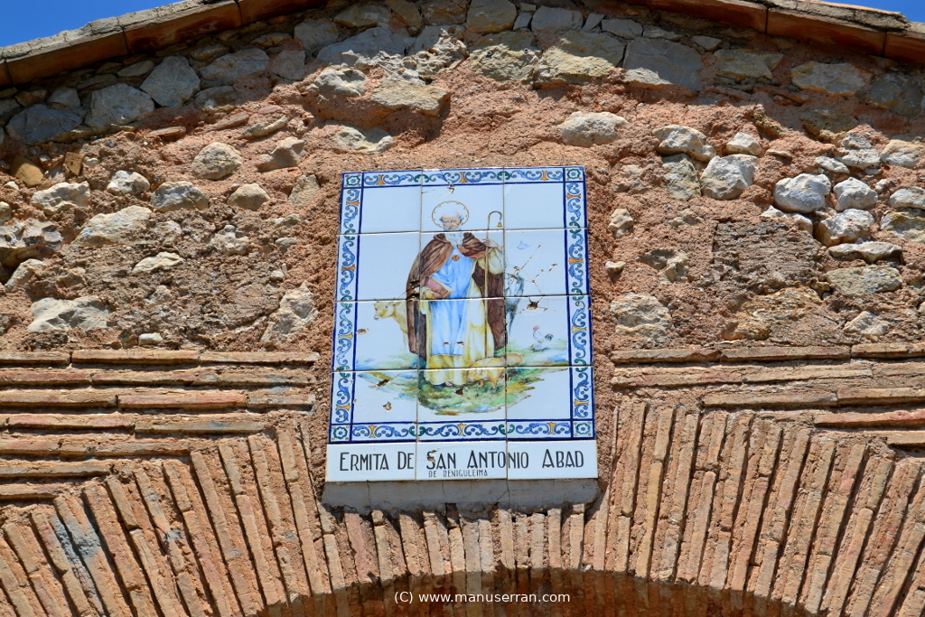 «…Ermita en la partida de Benisuleima (hoy Sant Antoni), dista del centro urbano poco más de un kilómetro y se accede por el camino que toma el nombre de la propia ermita, Camí de Sant Antoni, al Sureste de la población.