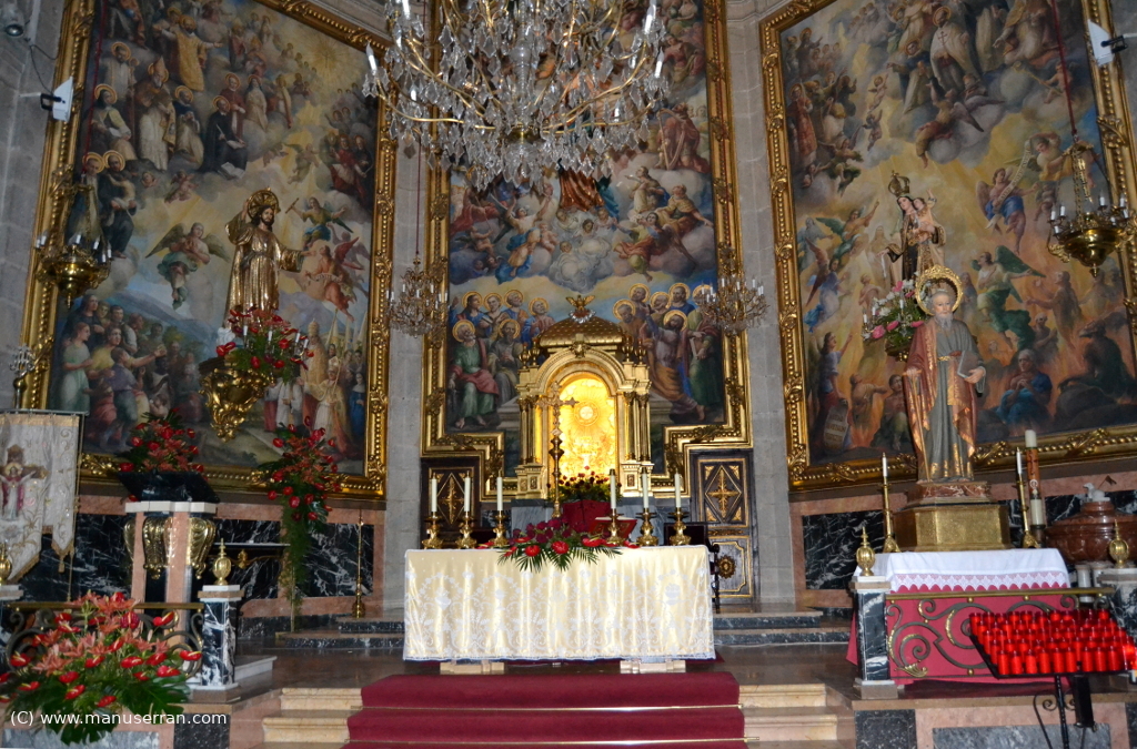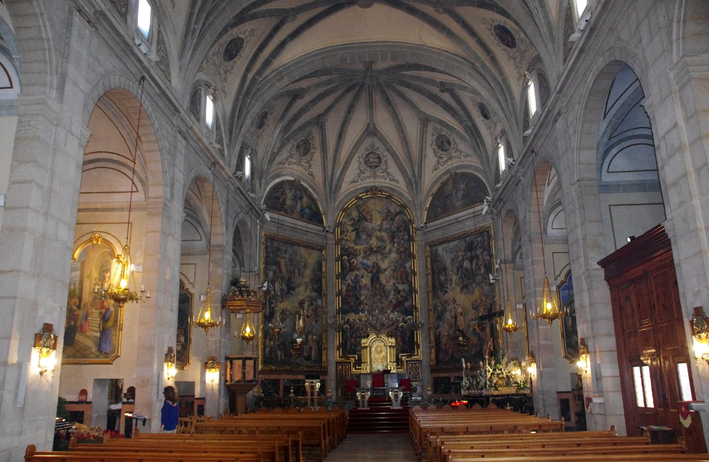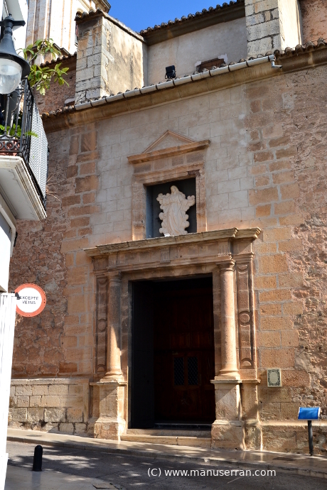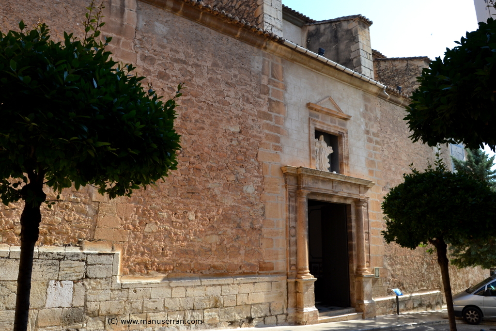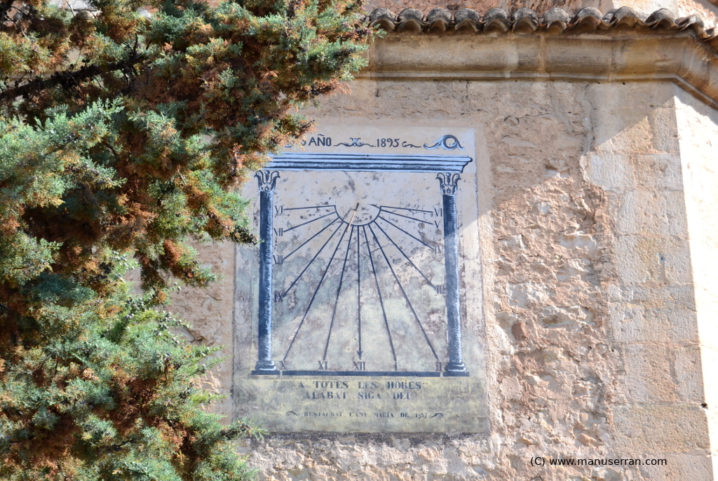 «…Templo de nave única con cuatro capillas entre contrafuertes y cabecera ochavada que sigue una tipología de salón asentada en las tradiciones constructivas del siglo XVI que encuentra paralelismos con otras iglesias de la comarca. Las proporciones de la nave tienden al equilibrio entre el ancho y el alto, lo cual permite acercar a la escala humana el eje visual que acentúa la fuga de líneas al altar. Las bóvedas nervadas y estrelladas son muestras de que la práctica tradicional convive con la gramática clásica recién importada. El acertado color dado a las bóvedas diferencia la plementería de la estructura, forzando la sensación de amplitud. La iglesia se completó con un Sagrario de planta centralizada, casi de cruz griega, cubierto con una cúpula esférica. Aquí destaca la recargada decoración de guirnaldas y ángeles, con abundantes dorados tan al uso de la desmesura hispana del siglo XVIII. A continuación se añadió la torre, cuyo emplazamiento debió ser objeto de discusión, si bien terminó por imponerse el criterio casi medieval de campanario exento, frente a las teorías más académicas de incorporarlo a la fachada principal y repetirlo a ambos lados para la correcta euritmia. Su estructura de tres cuerpos, con la basa maciza, fuste moldurado y remate de pilastras giradas, constituye una elegante muestra del tipo que se estaba imponiendo a mediados de siglo. De esta época es el portal de migdia, el cual restó protagonismo al primitivo y sobrio acceso de los pies, que quedó ensombrecido cuando se suprimió la manzana del lado sur para crear la plaza, definiendo la visión lateral actual. El templo atesora un retablo del siglo XV, una cruz procesional de los siglos XV-XVI y un Jesús Crucificado del siglo XVI…». (4)