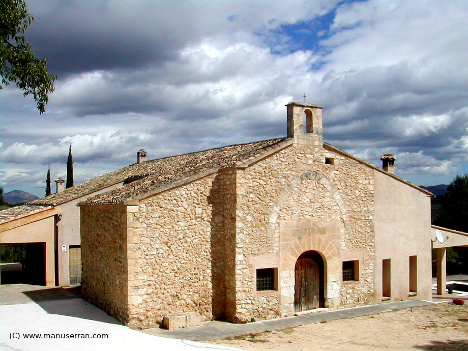 «…Ermita situada en el arrabal, llegando a la población por la carretera de Benifallim, a la derecha de la última curva y sobre un montículo.