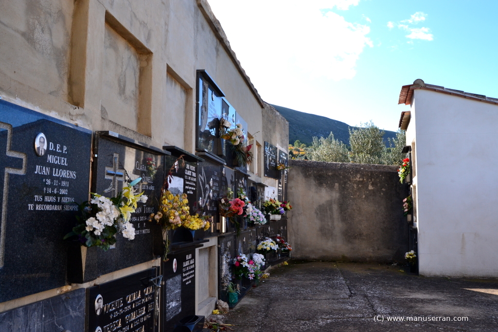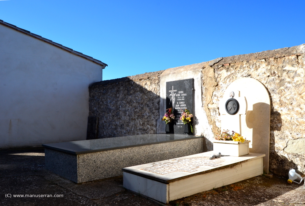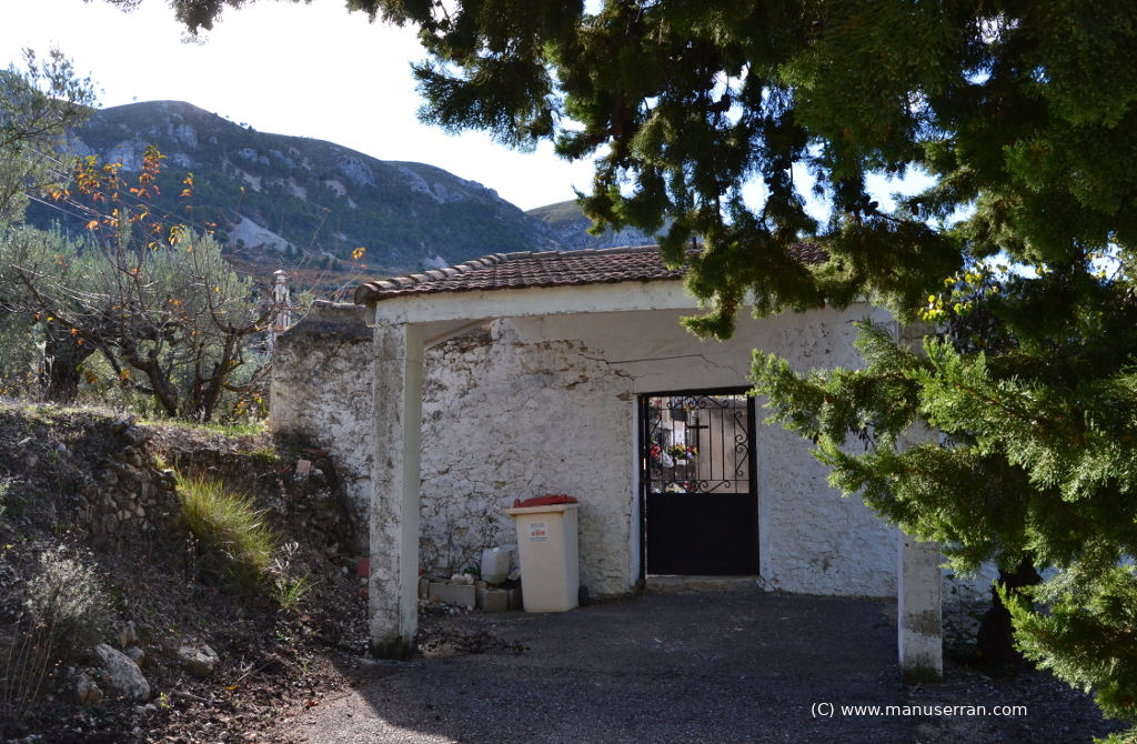 «…Cementerio de forma cuadrada. Está rodeado por un muro perimetral realizado en piedra irregular con un pequeño porche a la entrada con el tejado de tejas rojas. En éste se sitúa una cruz de hierro en la parte central. La puerta, de forma cuadrada, es de forja negra, adornada y con una cruz en la parte central…». (2)