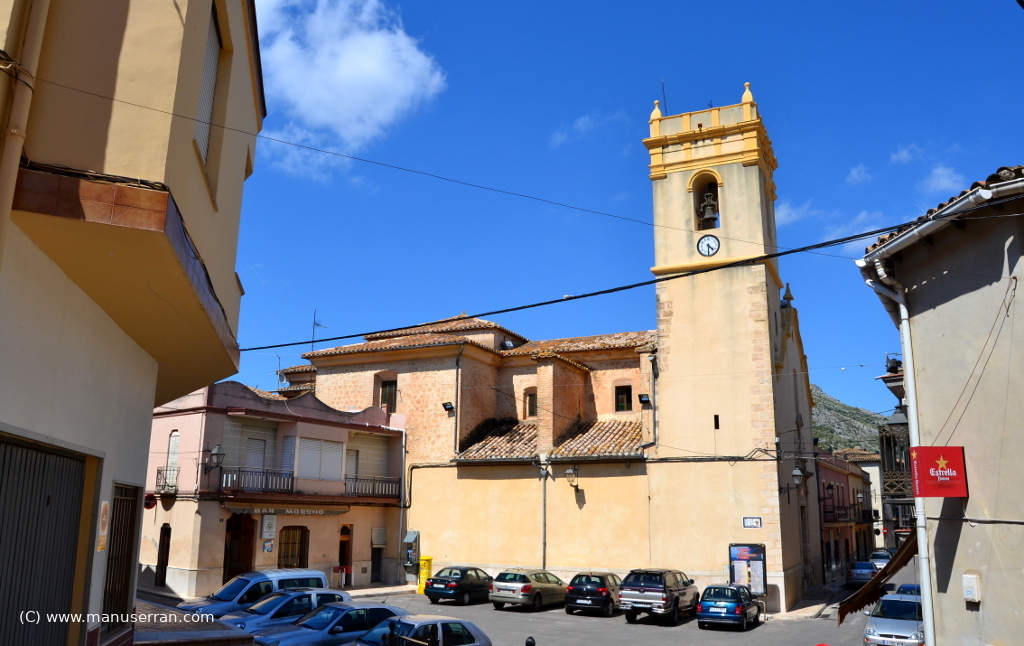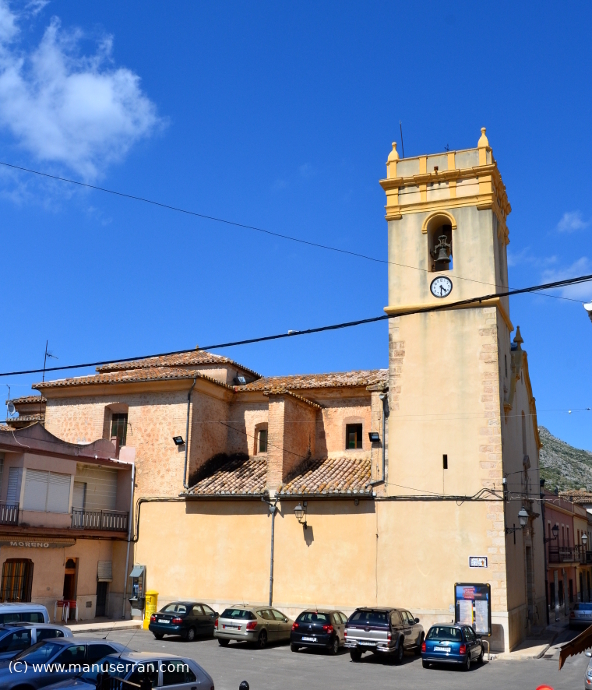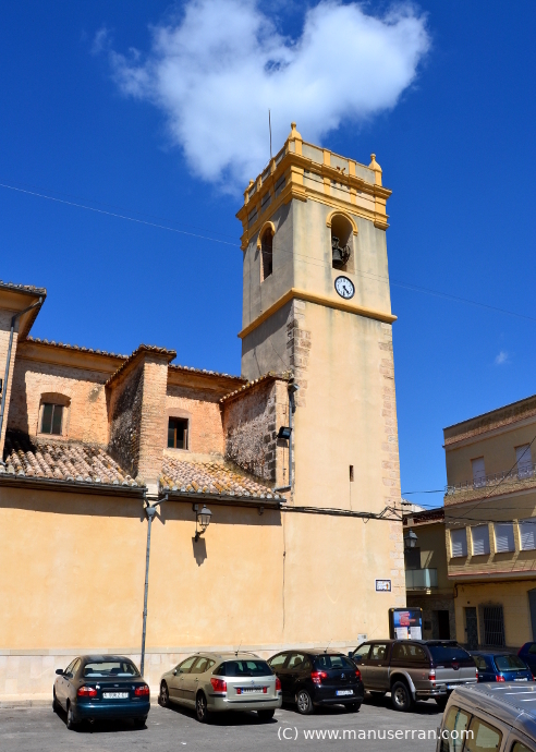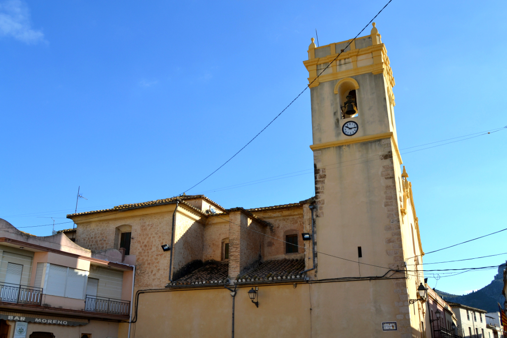 Debemos suponer la existencia de un primer templo cristiano (probablemente, el único de la Rectoría en los primeros años), construido sobre la mezquita musulmana, sobre el que se edificaría otro en el siglo XVII. Los primeros Quinque Libri del archivo parroquial tienen entradas de 1710, pero un libro de la Cofradía del Rosario nos da noticias de 1663. Tenemos también un libro de Títulos y Fundaciones de mediados del siglo XVII y otro de Fábrica de 1701, si no anterior. La información fehaciente que poseemos nos dice que el actual templo, de estilo barroco, es del siglo XVIII. también sabemos que en 1772 y 1773 no hubo fiestas patronales porque se había quemado la iglesia. Al año siguiente, una vez reconstruido el templo, se hicieron tres fiestas y tres procesiones: el 6 de enero (fecha de la antigua advocación de la iglesia) la correspondiente a 1772, y el 2 de febrero (Purificación de María) la correspondiente a 1773 y el 7 de octubre (Nuestra Señora del Rosario) la correspondiente a ese año de 1774…». (3)