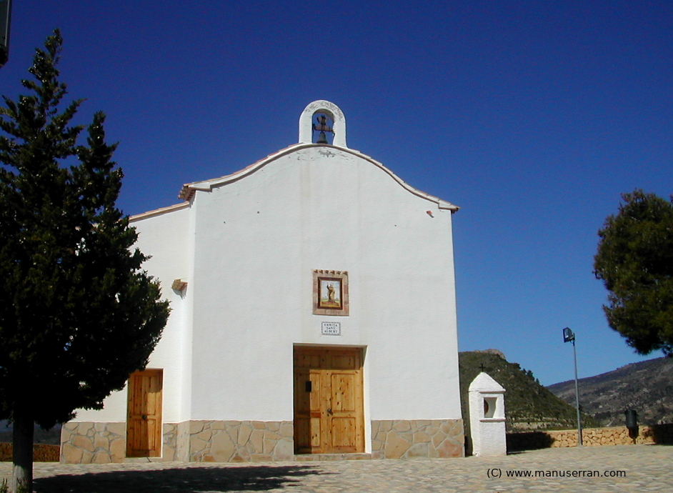 «…Se emplaza en un móntículo próximo a la villa, en la cercanía del castillo. Se accede por un camino salpicado por los casalicios de un Vía Crucis, cuya última estación se sitúa junto a la ermita.