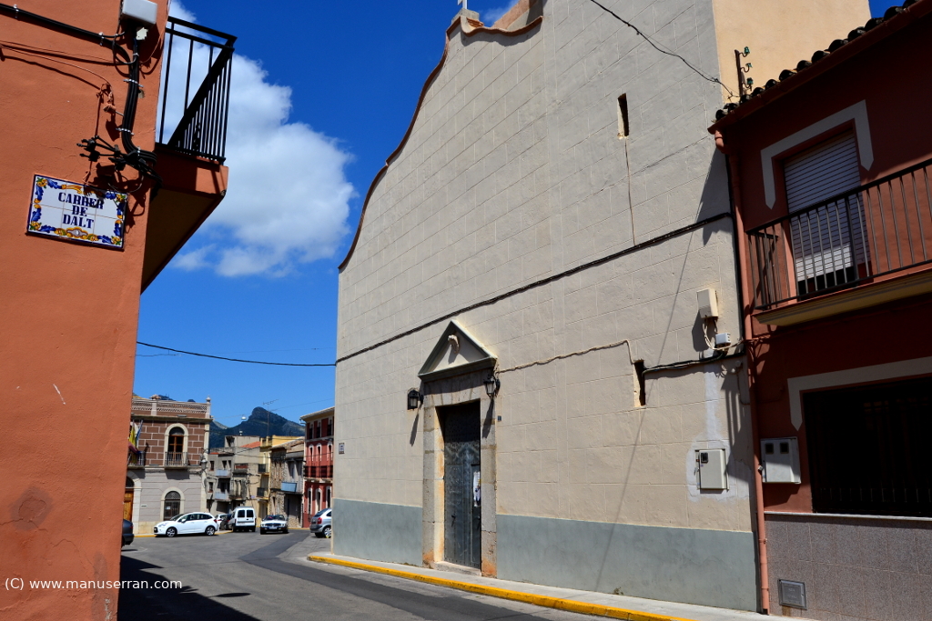 «…Sagra, Sacra. Al pie de un monte llamado Cabal, se encuentra esta villa de 750 habitantes, que es curato de entrada desde el último arreglo parroquial, pues antes era filial de Ráfol de Almunia: es del arciprestazgo de Pego. En tiempo de los árabes era una alquería que perteneció a Juan Pérez de Cullera, y fue comprada por Eximen Pérez de Tarazona, compra que confirmó el rey en 13 de febrero de 1249. En 25 de abril de 1286, la tenía Pedro Jiménez de Ayerbe, y en 13 de diciembre de 1299 la obtuvo, por donación, Raimundo Vilanova. Poseyó el señorío últimamente la Encomienda de Santiago, que tenía allí un palacio. En el arreglo de parroquias de 1535, se anexionó a Ráfol, y en tiempo del Beato Juan de Ribera se erigió en parroquia, dándole por anejos el mismo Ráfol, Tormos, Benimeli, Negral y Sanet, y contaba entonces 16 casas de cristianos nuevos. Dicho Arzobispo mandó derruir la mezquita y que se construyese una iglesia con la advocación de San Sebastián, que es la que hoy tiene. Más tarde volvió a ser filial de Ráfol. Se celebran fiestas a San Antonio abad, al titular y a los Santos Abdón y Senén, en sus días. Por la expulsión de los moriscos quedó deshabitada esta villa, volviendo a repoblarse en 1610…». (2)