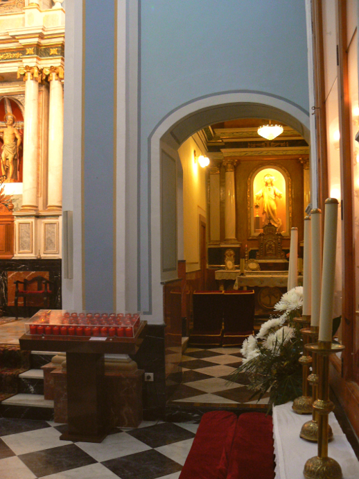CAPILLA DE LA COMUNIÓN: Decorada con ocasión de la creación de la parroquia ha sido restaurada en el año 2003 con motivo de la beatificación del que fuera cura párroco de Sagra, Fernando García Sendra, cuya reliquia se encuentra en esta capilla.