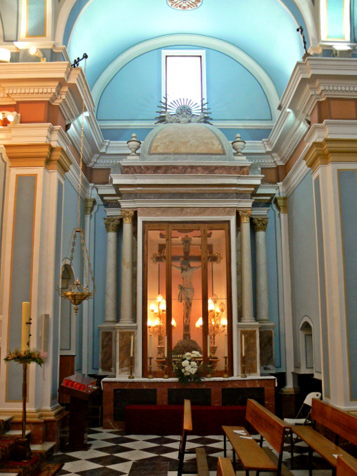 CAPILLA DEL SANTÍSIMO CRISTO DEL CONSUELO: situada en uno de los brazos del crucero, la altura de este sitio privilegiado le permite ser el mayor junto con el Altar Mayor. La preside la imagen labrada por los escultores Rausell y Llorens encima de las andas con que procesiona el segundo domingo de Agosto. Este altar fue construido en 1853 y reformado a principios de siglo.
