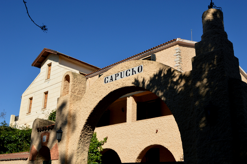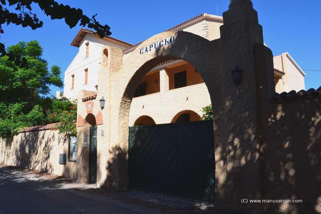 «…Ubicada en la partida de Fabraquer, junto al camino Reial de la Vila Joiosa. Se tiene constancia que la finca Capucho existía ya en el siglo XVII, pero pudo haber sido construida anteriormente. Desde entonces ha sido la residencia hortelana de los señores Barones de Finestrat. Los vinos y sedas cosechados en esta finca tuvieron tal fama que fueron expuestos como artículos dignos alicantinos en la Gran Exposición de Londres de 1851, donde fueron seleccionados diferentes tipos de vino y sedas, productos de las fincas delQuinto Barón de Finestrat