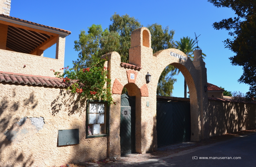 La finca linda con la vereda de Benimagrell, conformando uno de los cuatro caminos que da nombre al mítico enclave. Esta zona es una de las pocas de Fabraquer que todavía conserva campos de labranza. Pero el mayor periodo de bonanza de la agricultura alicantina fue a mediados del siglo XIX, cuando el cultivo del viñedo se hallaba en plena expansión. En aquella época, propietarios de grandes extensiones de la Huerta, como los de la finca Capucho, ampliaron la superficie agraria dedicada al cultivo de la vid...que distribuían…en los mercados ingleses y franceses el vino fondillón de Alicante, la uva de Jijona o la pasa de Denia…». (1).