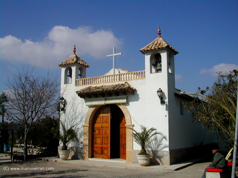 «…Situada en la partida de Fabraquer, en las cercanías de San Juan en dirección a la playa, se llega por el Camino de Marco, la ermita como escondida a la derecha, puede pasar desapercibida.