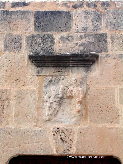 Ureña (4), hace una descripción muy similar a la antedicha de Candelas Orgilés, aunque aporta algún dato significativo: “…En la cabecera, en piedra un escudo en blanco. Este escudo, bien puede ser los restos de un crismón. El crismón es una de las representaciones simbólicas más repetidas durante el Medievo. Lo encontramos en tímpanos de catedrales, iglesias y en claves de arcos de puertas y ventanas y en algunos sillares. Antes de su cristianización era el símbolo solar por excelencia. Para el profesor Ángel de Miguel, el crismón es la versión europea del concepto primigenio del círculo.