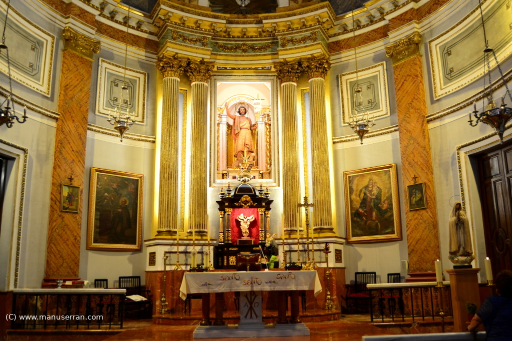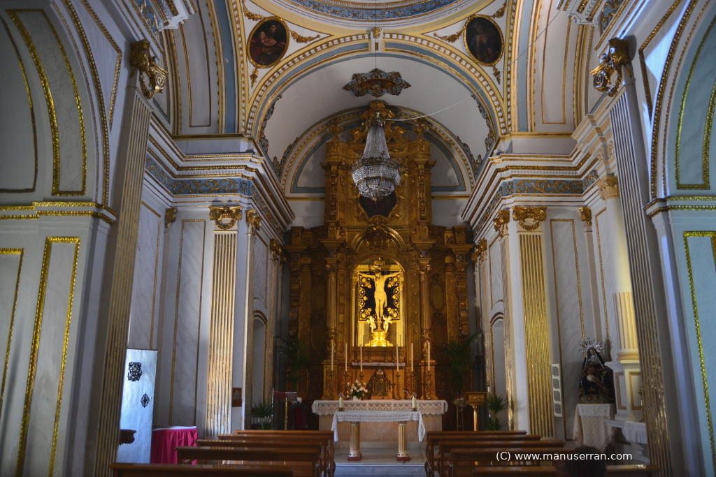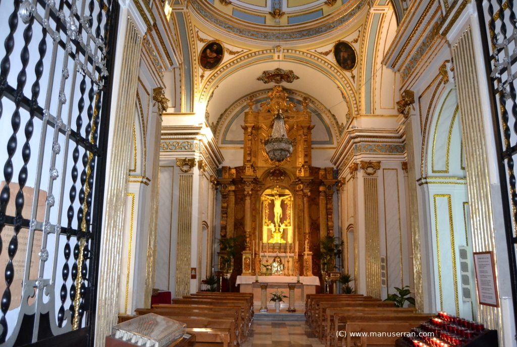Y Viravens, dice: “…La iglesia, dedicada a San Juan Bautista, edificase frente á una extensa plaza, de la cual parten otras calles. Este templo fue mezquita en tiempo de los moros […] En el siglo pasado se construyó la capilla del Comulgatorio de la iglesia de San Juan, venerándose en su magnífico altar una imagen del Smo. Cristo de la Paz que, según la tradición, fue obra de dos pobres peregrinos…”. (4)