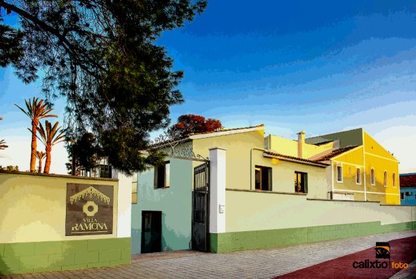 «…Residencia inaugurada el 15 de febrero de 1945, situada entre las calles San Antonio y del Mar. El edificio principal se dispone conforme a una planta en forma de “H” con las alas muy separadas. En el tramo central queda una nueva la que configura el eje principal, donde esta dispuesto el acceso y el amplio comedor. En el resto de las alas se situán las numerosas habitaciones de la residencia.