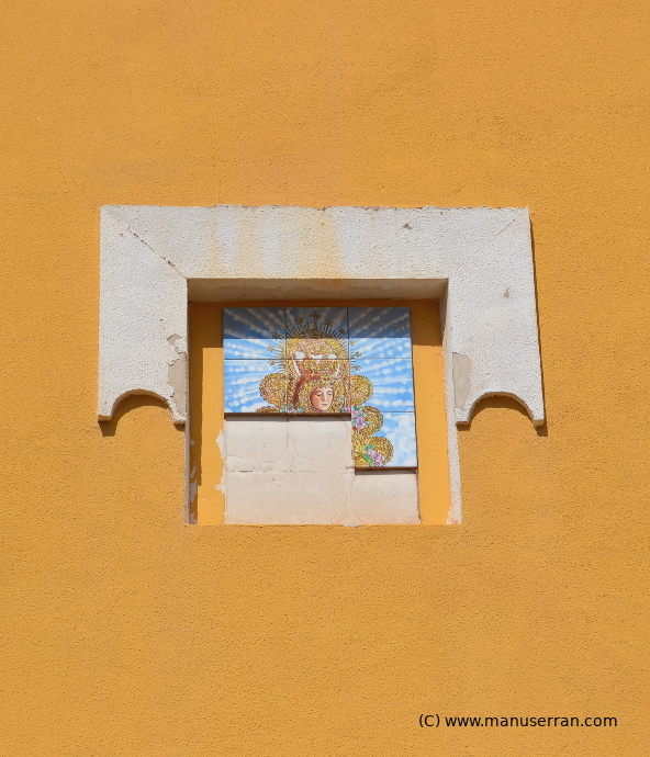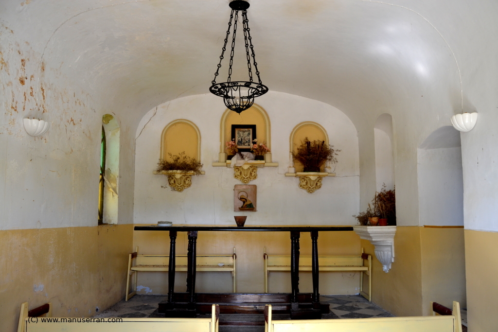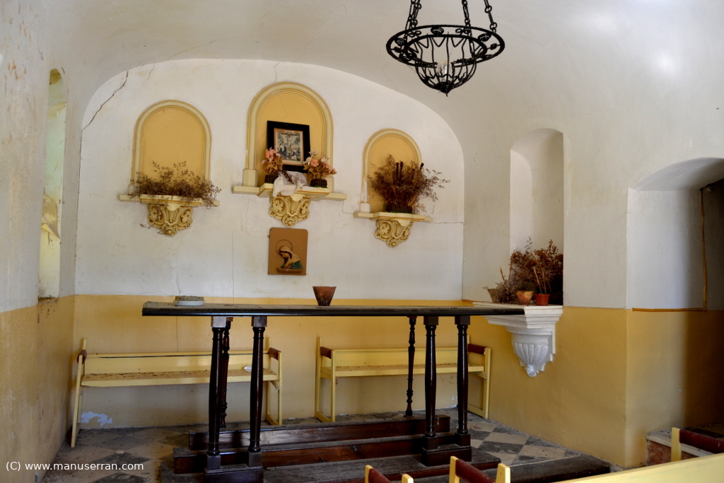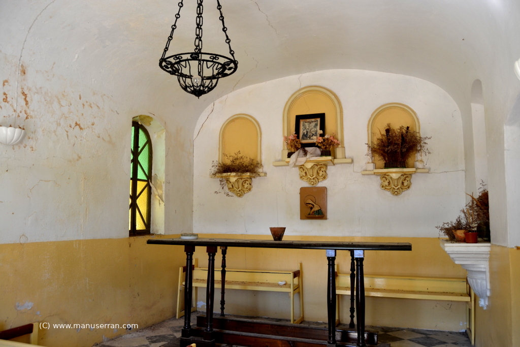 Junto al lado Suroeste del edificio existe una pequeña ermita de nave única y cubierta a dos aguas con campanil sin campana. La puerta estaba coronada por un azulejo dedicado a la Virgen del Rocío, hoy incompleto…». (1)