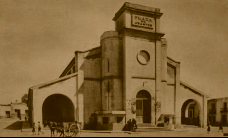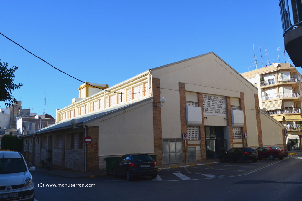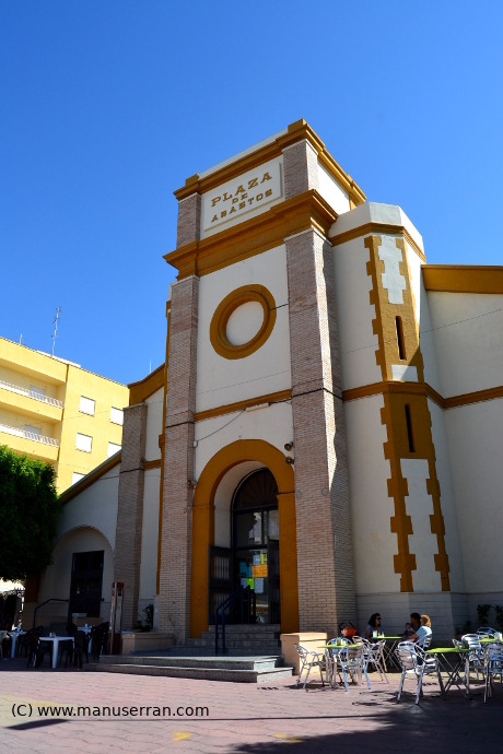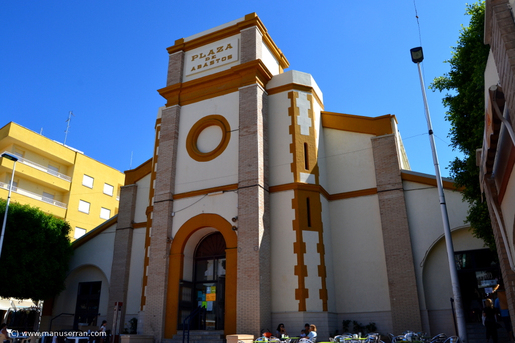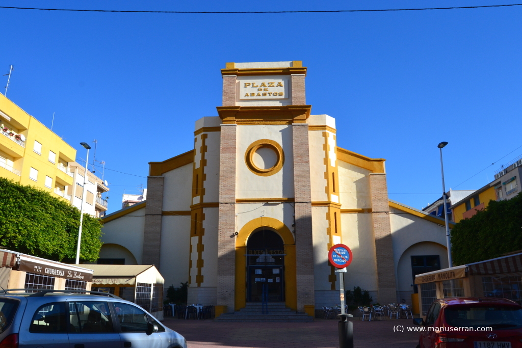 «…El edificio del actual Mercado de Abastos fue anteriormente una iglesia comenzada a construir en 1861 y cuya transformación tuvo lugar entre 1935 y 1938. En la estructura todavía se puede rastrear la inicial planta de cruz latina con tres capillas laterales, de la cual derivan los dos amplios espacios rectangulares del interior. Esta sala central presenta cuatro accesos que coinciden con los extremos primitivos. El conjunto se completaba con dos porches, ahora cerrados, añadidos en paralelo a la nave principal. En el centro del antiguo crucero se levantó una estructura metálica para apoyar las cerchas con las que se cubre el espacio a una considerable altura, lo cual permitía una iluminación cenital entre la diferencia de cotas, Hoy todo este magnífico interior no puede apreciarse por la ejecución de un falso techo. En el exterior, la volumetría es rotunda, con la fachada principal dominada por el adelantamiento del cuerpo central original y el perfil escalonado de las cubiertas. Las fábricas interiores están ejecutadas con ladrillo (oculto) y las exteriores son de sillería en las torres laterales que flanquean la entrada…». (1)
