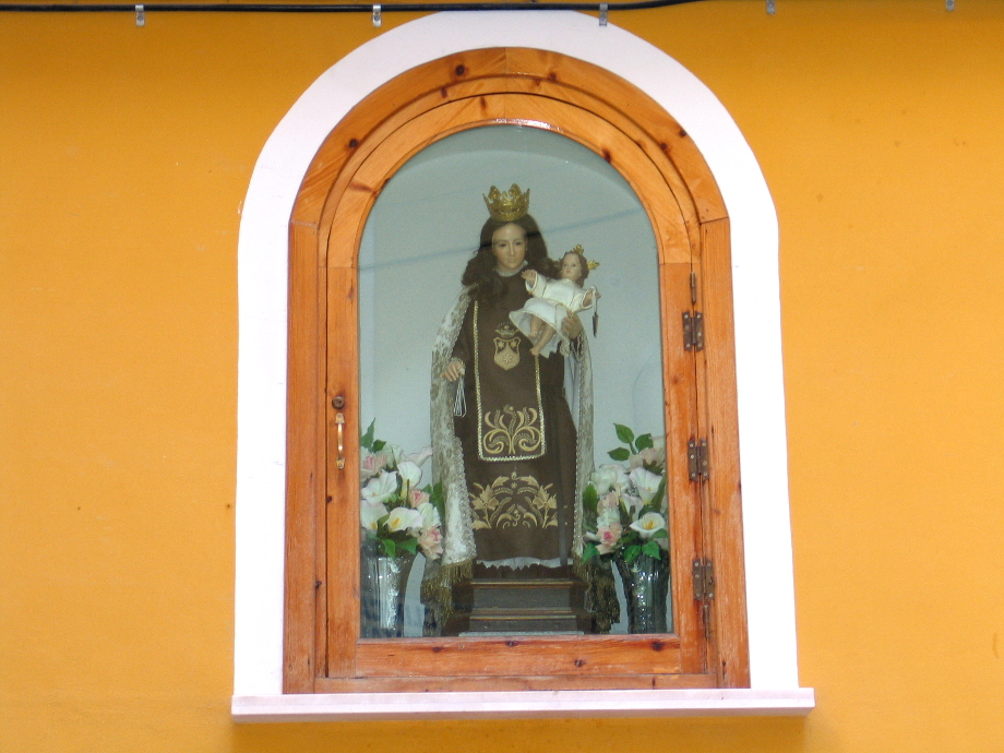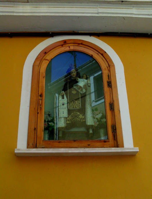 Sobre la fachada de un edificio que hace chaflán a las calles del Carmen y Mayor.